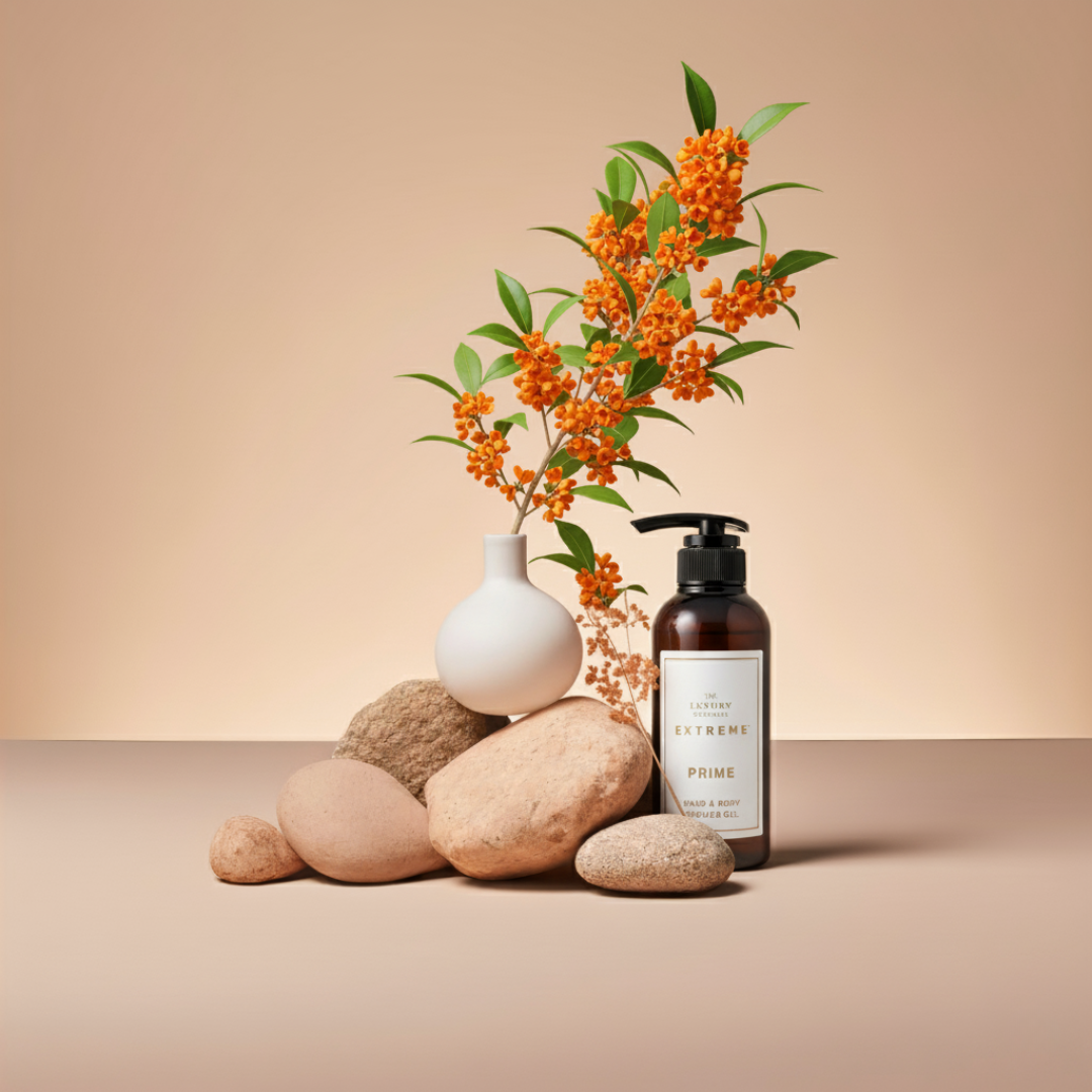 厳選された希少な成分が、肌に深い潤いを与え、しっとりなめらかな洗い上がりを実現。上質な金木犀の香りに包まれ、心まで満たされる、至福のバスタイムをお届けします。