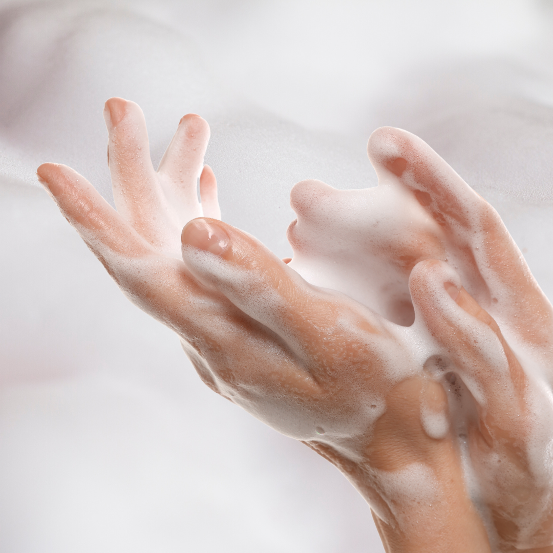 ・濡らした手に1~2プッシュとり、泡立てながら洗った後、ほどよくすすぎます。