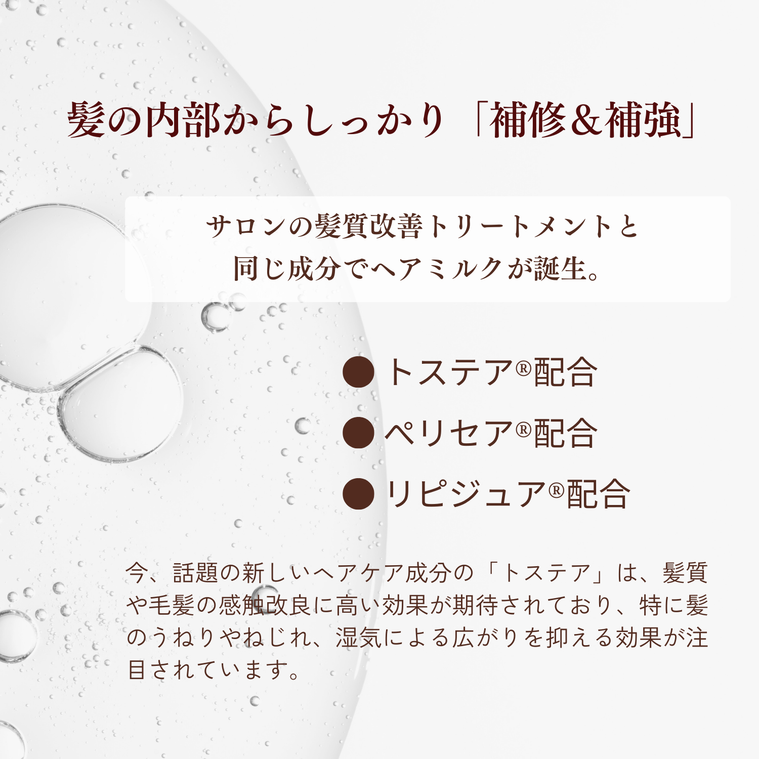 サロンの髪質改善トリートメントと同じ成分でヘアミルクが誕生しました。